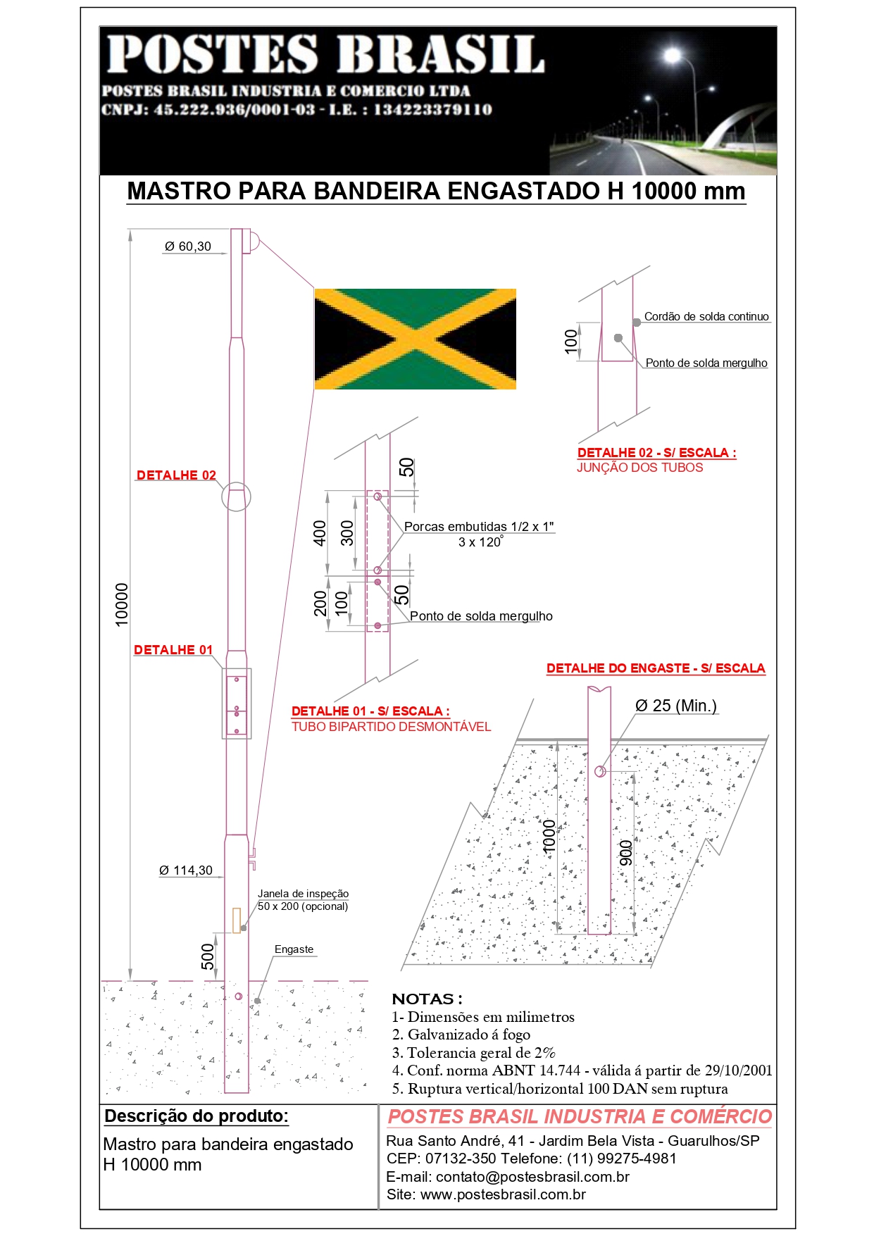 - Mastro Para Bandeira Engastado H 10000 mm