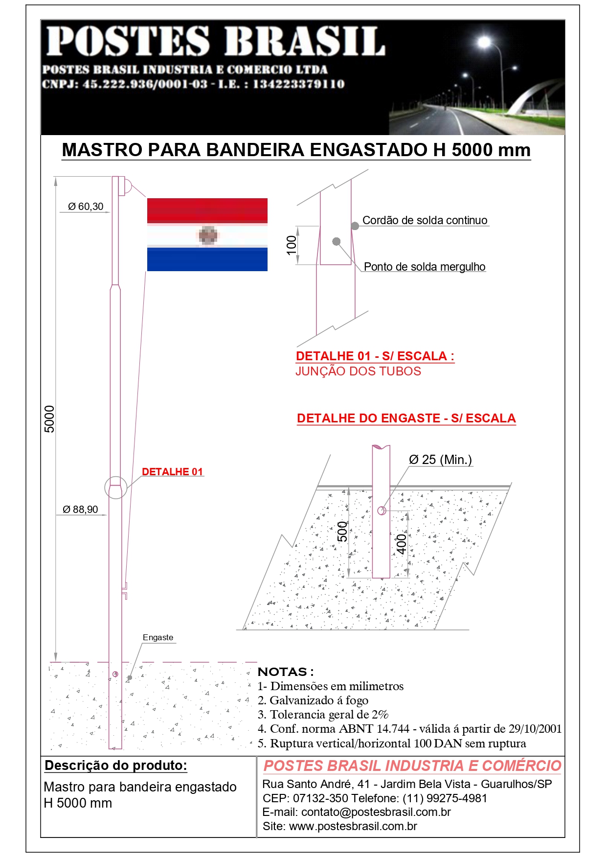 - Mastro Para Bandeira Engastado H 5000 mm