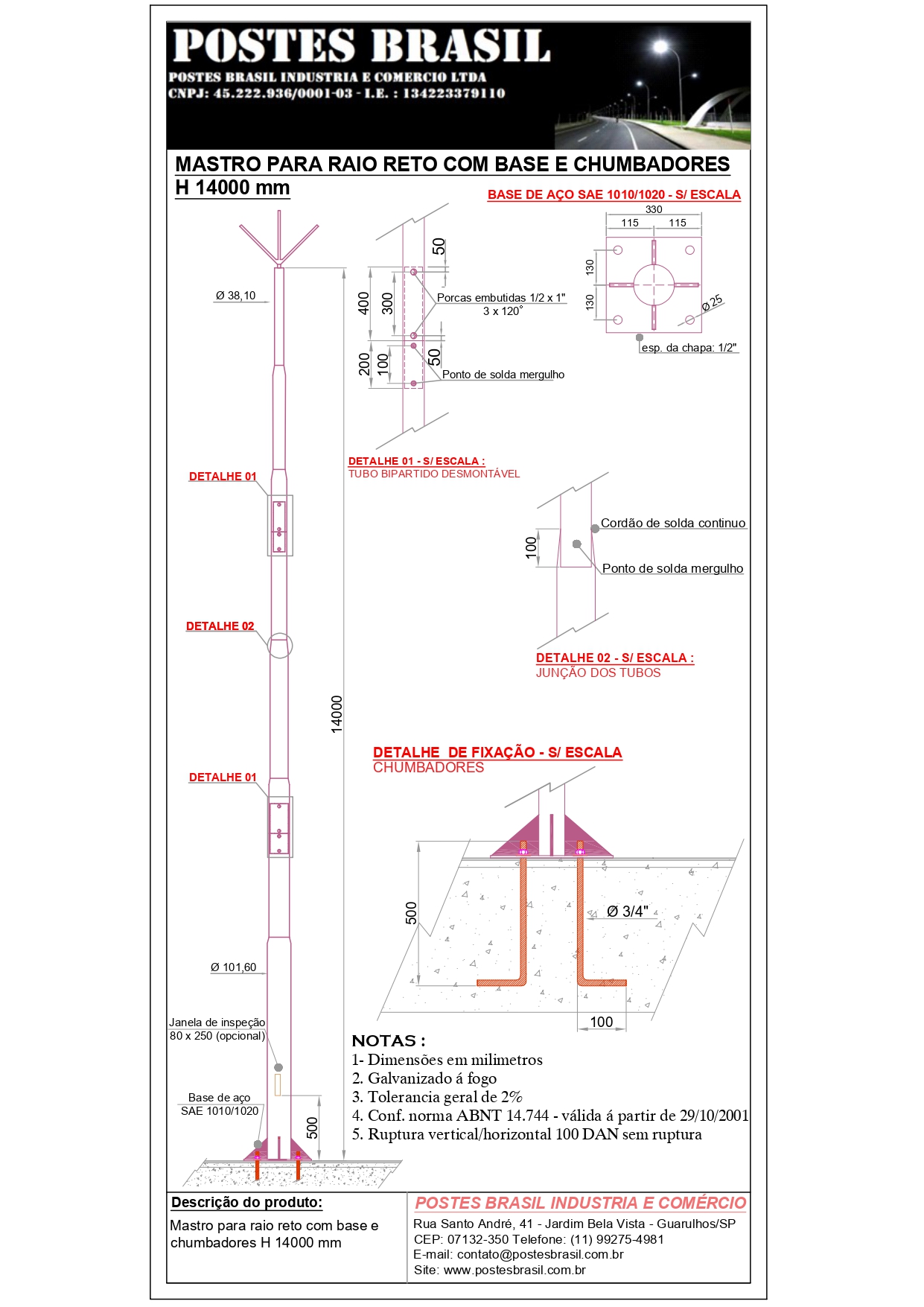 - Mastro Para Raio com Base H 14000 mm