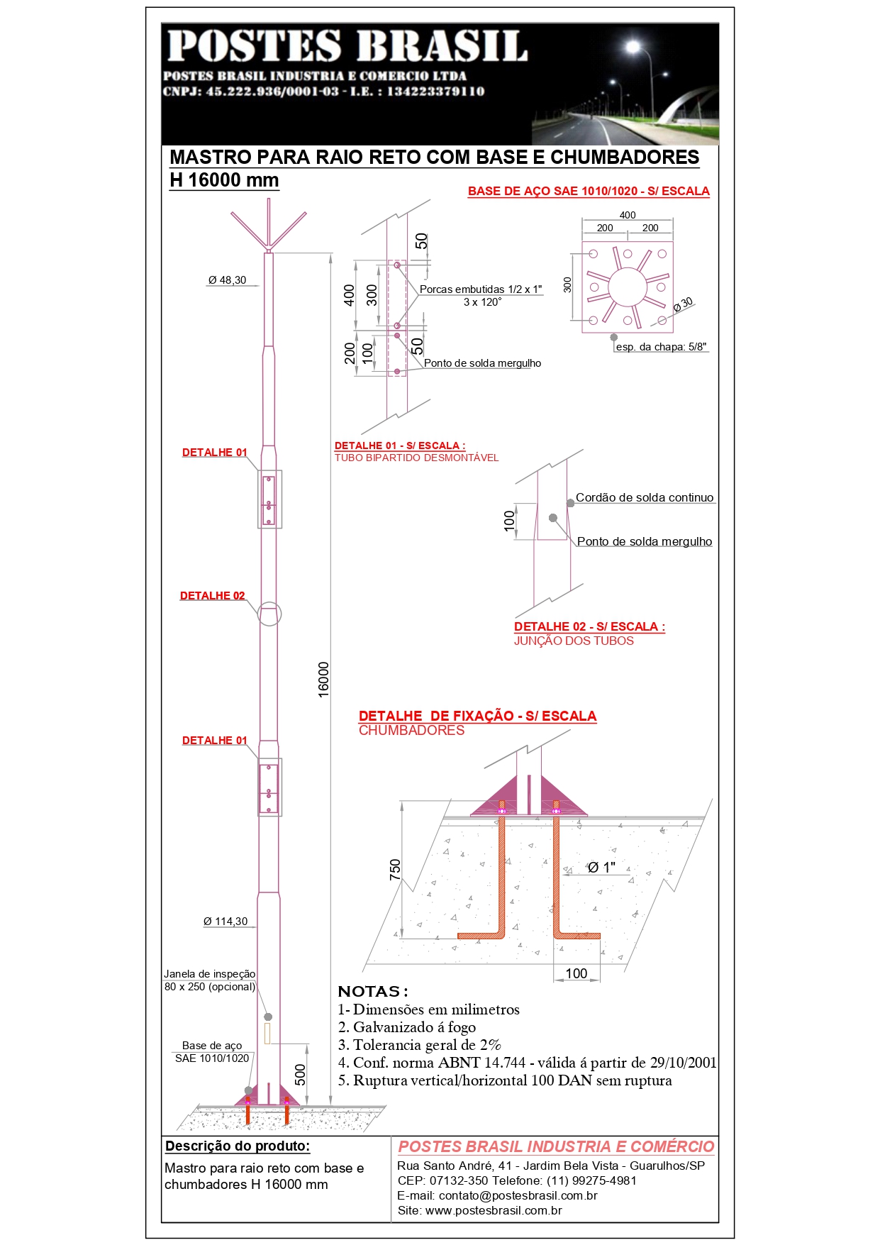 - Mastro Para Raio com Base H 16000 mm
