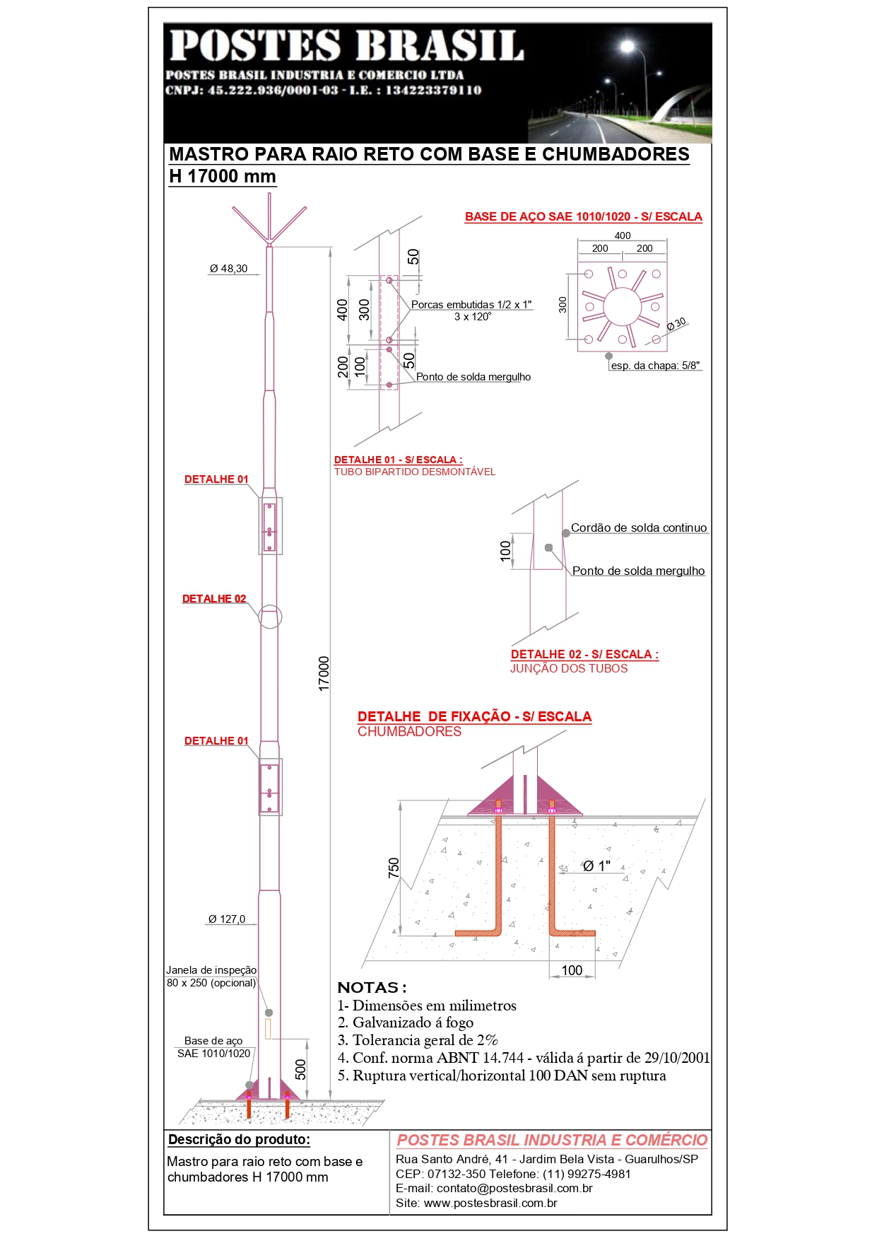 - Mastro Para Raio com Base H 17000 mm