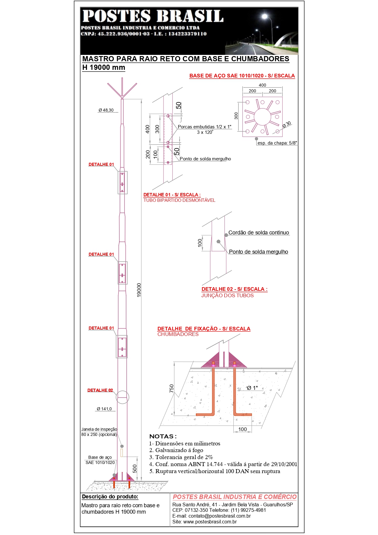- Mastro Para Raio com Base H 19000 mm