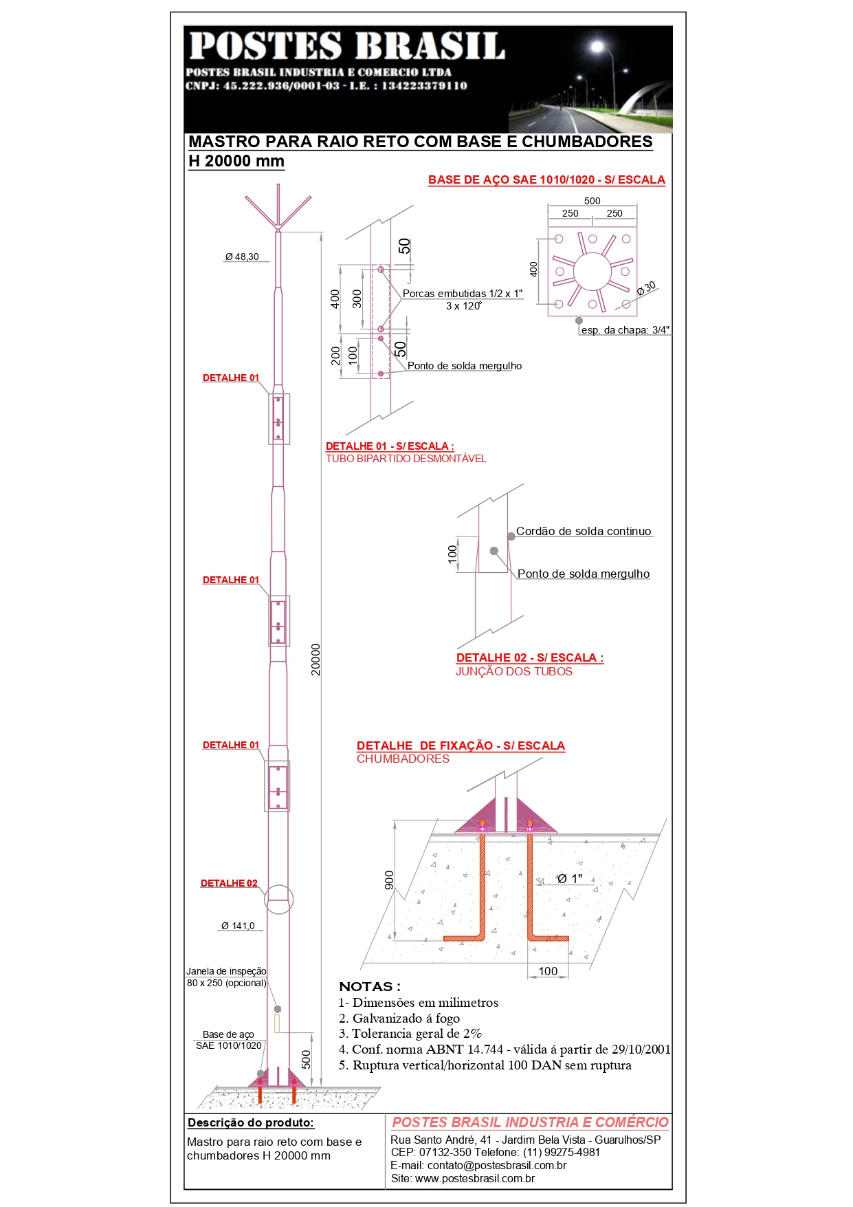 - Mastro Para Raio com Base H 20000 mm