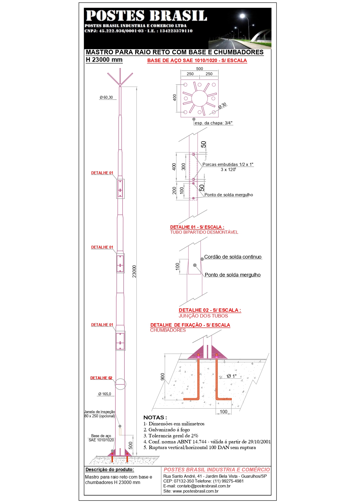 - Mastro Para Raio com Base H 23000 mm