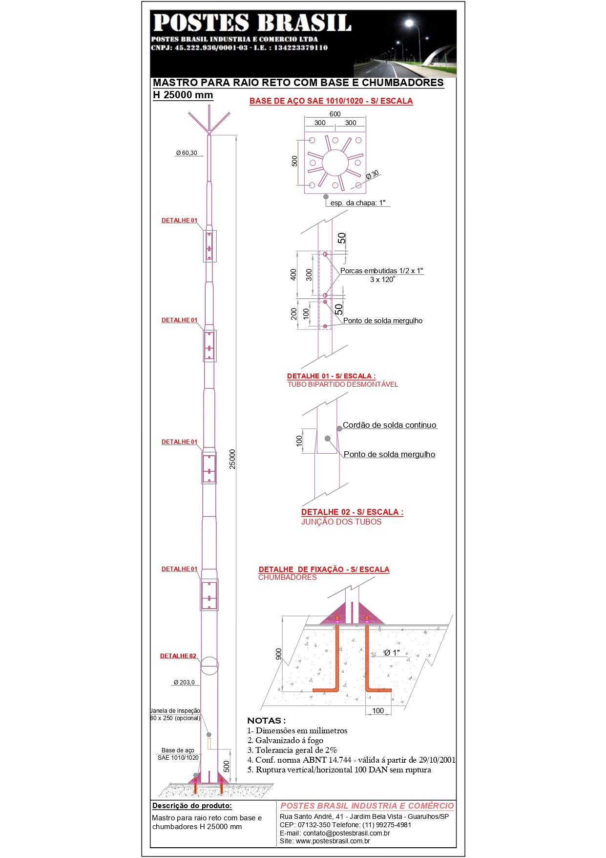 - Mastro Para Raio com Base H 25000 mm