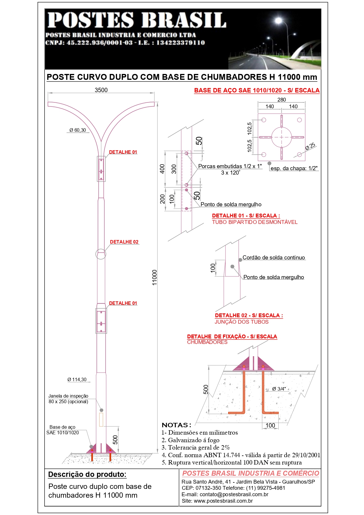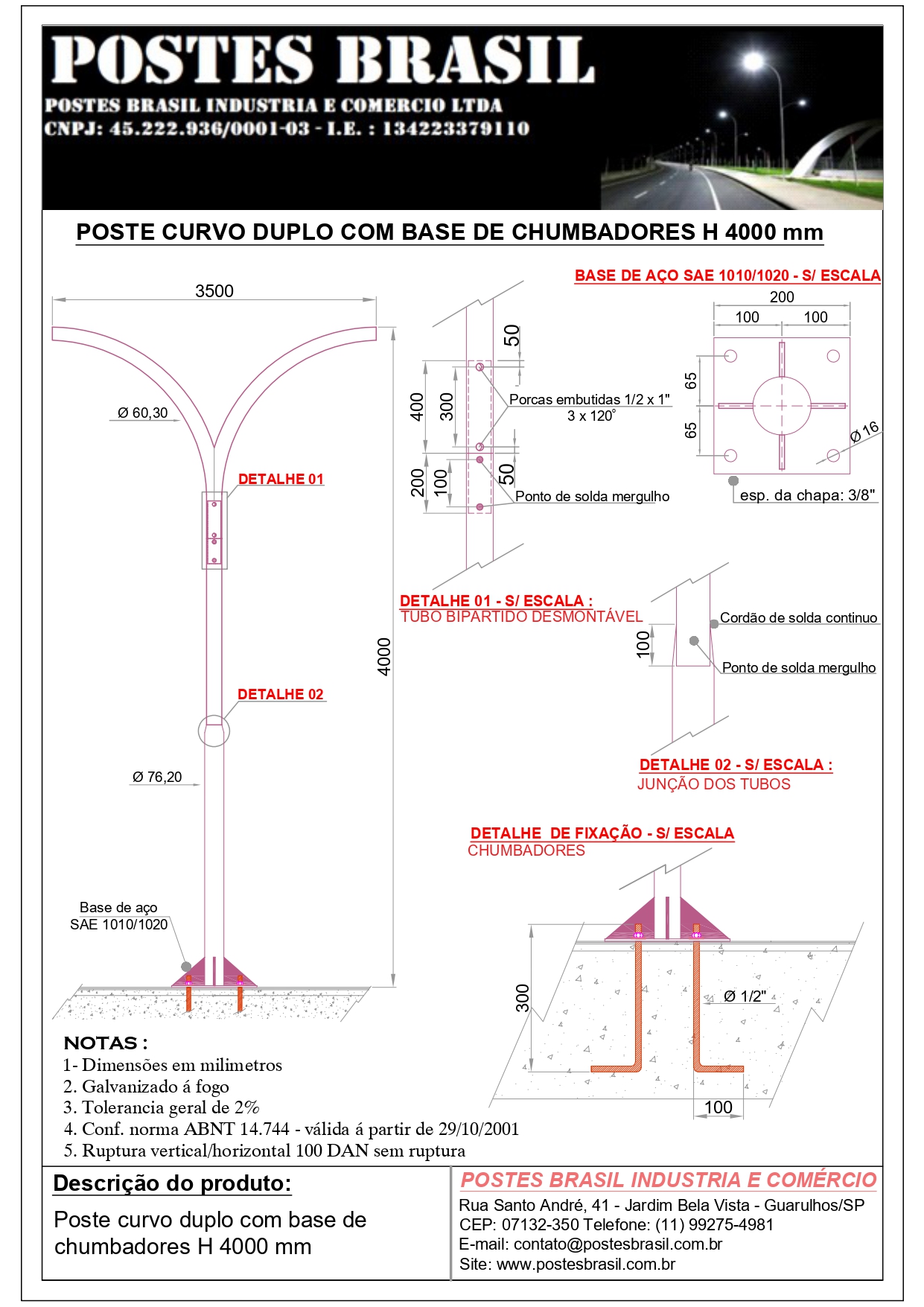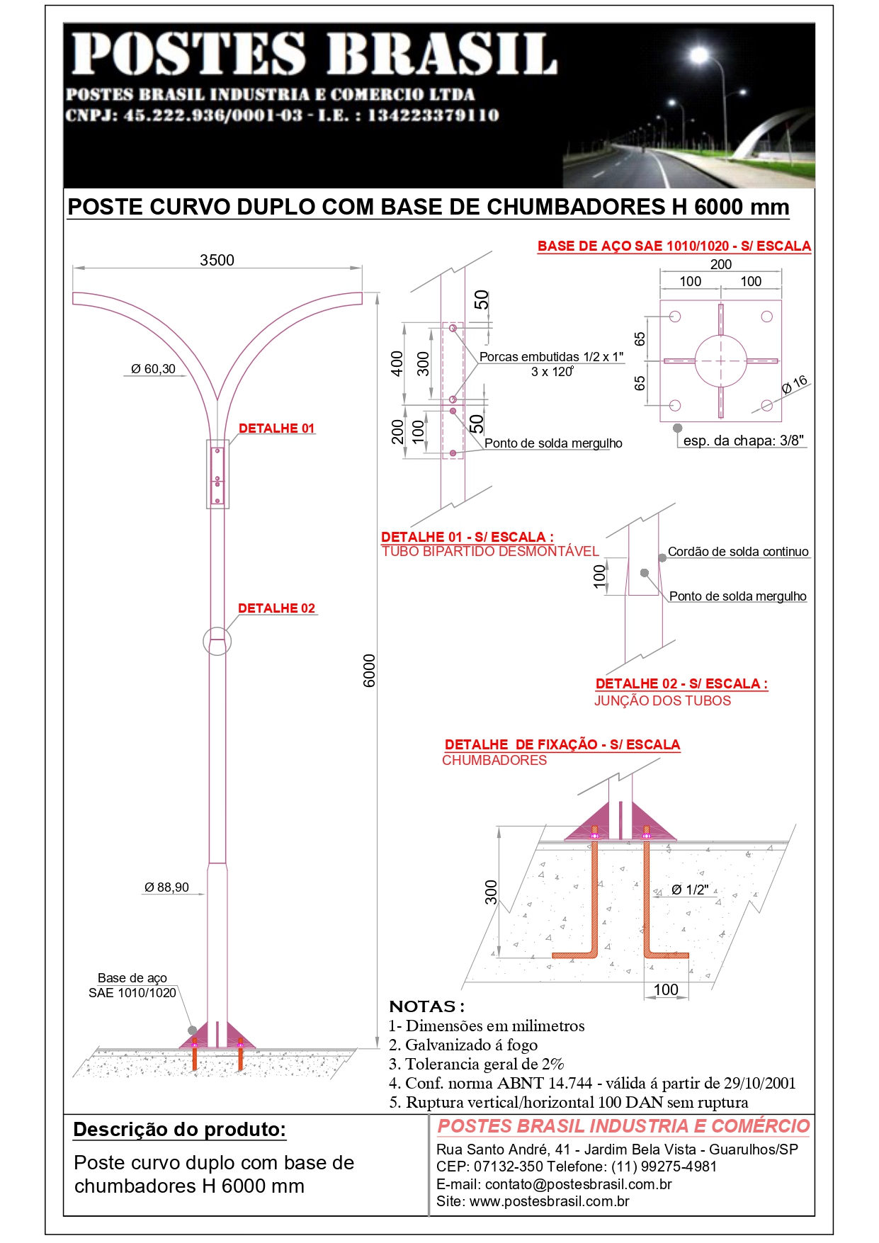 • POSTE CURVO DUPLO COM BASE