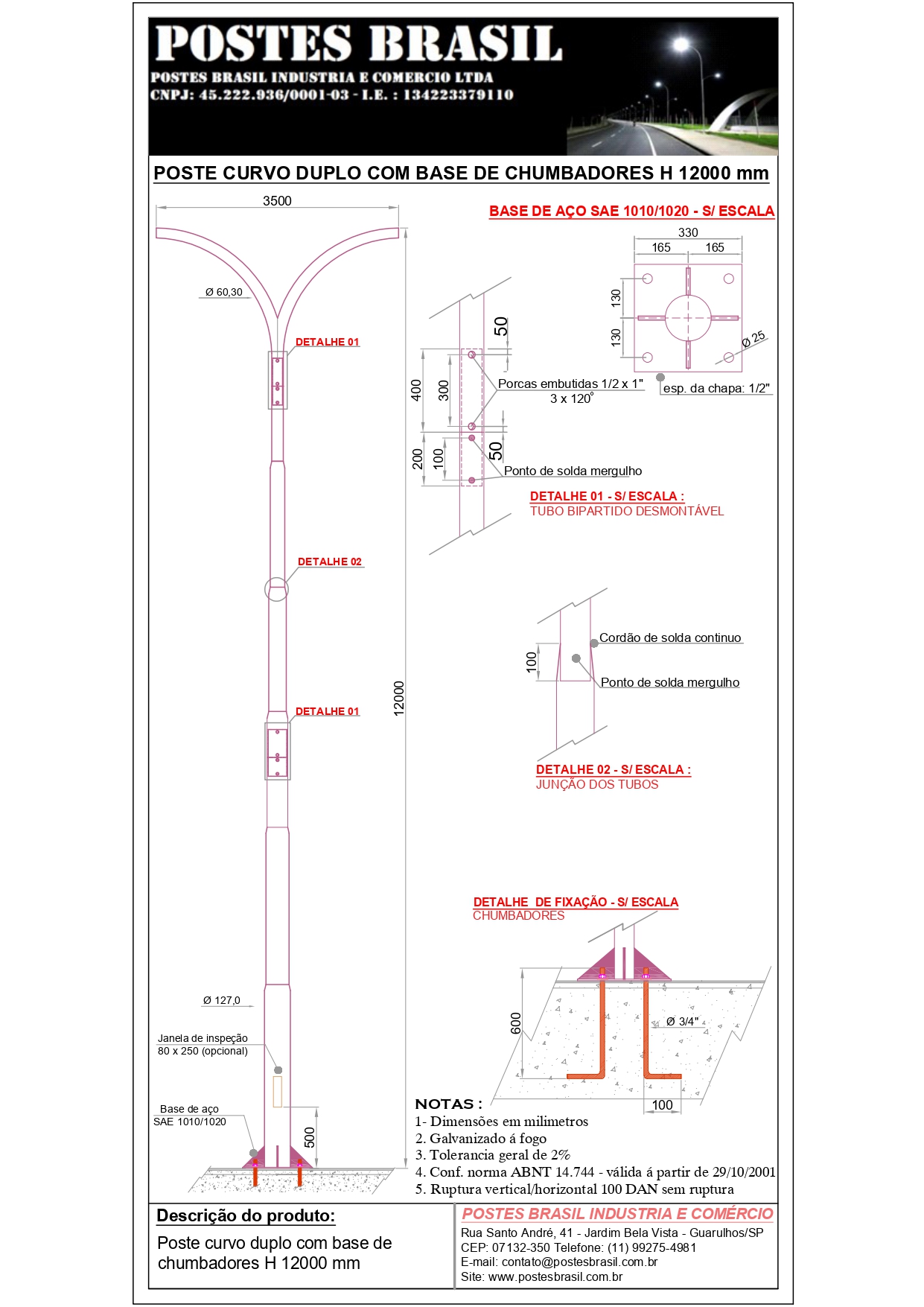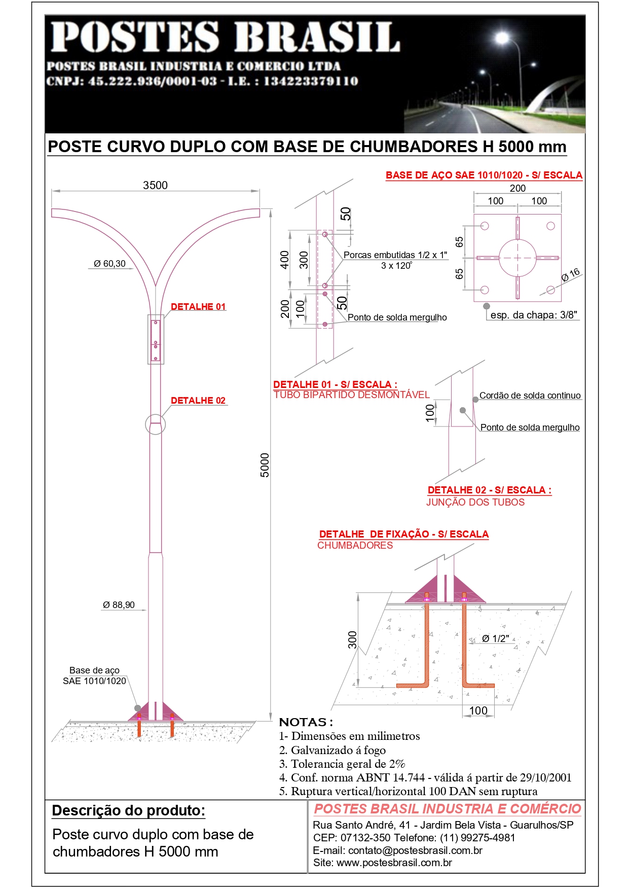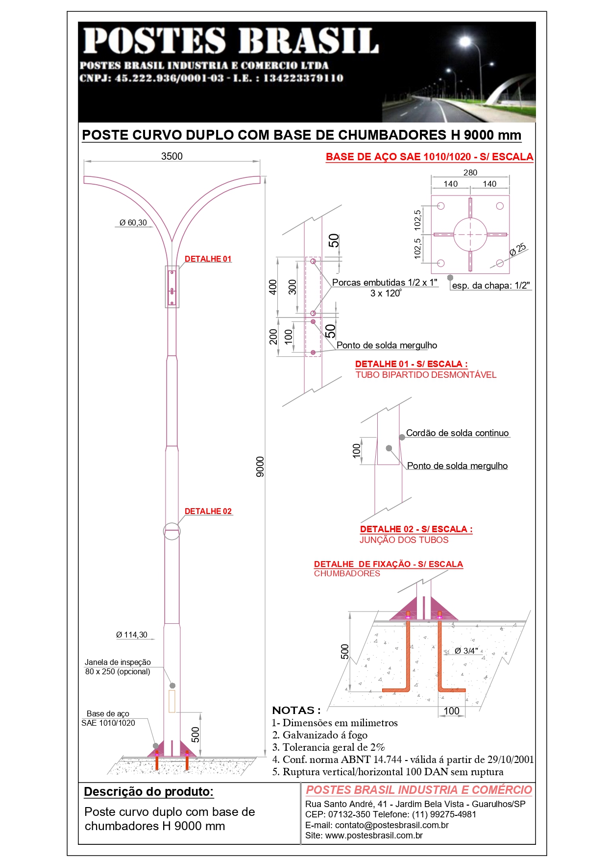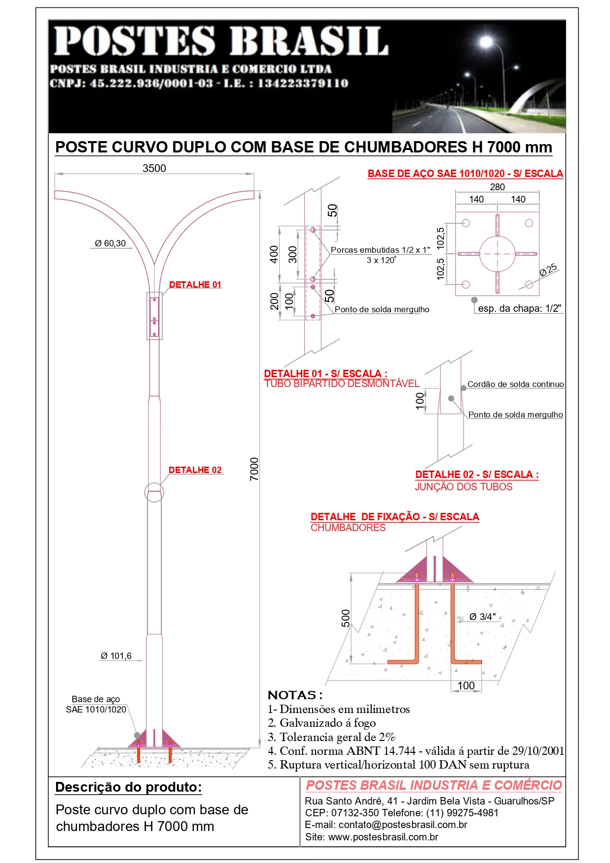 • POSTE CURVO DUPLO COM BASE