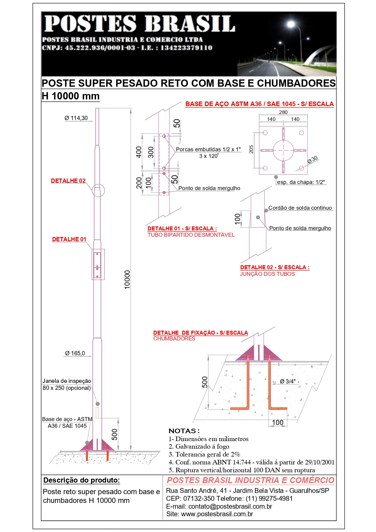 Poste Super Pesado Reto com Base H 10000 mm