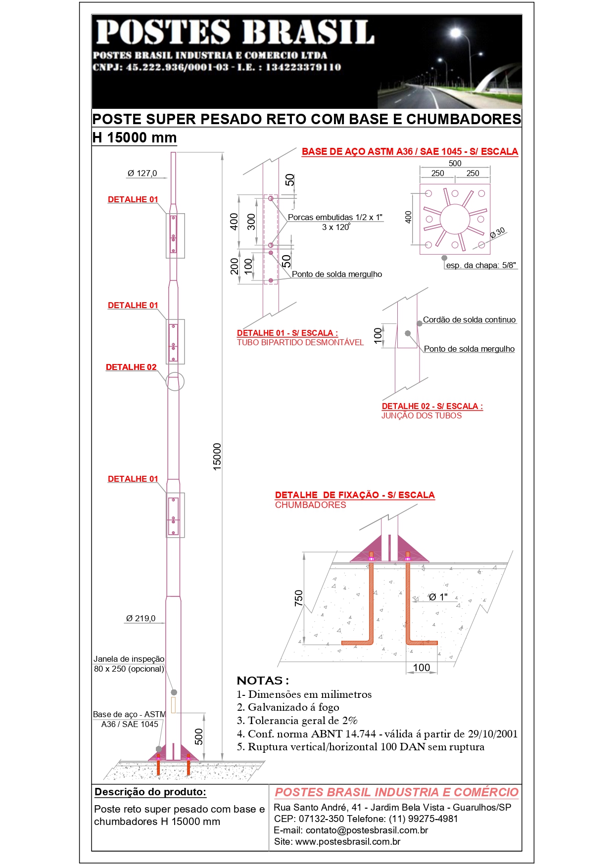 Poste Super Pesado Reto com Base H 15000 mm